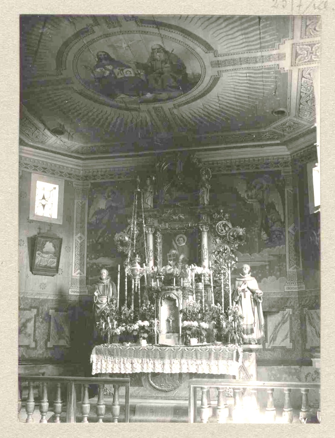 Ołtarz św. Wawrzyńca i utracona polichromia Otto Kowalewskiego. Zdjęcie z 1930 r. ze zbiorów AP w Kielcach.